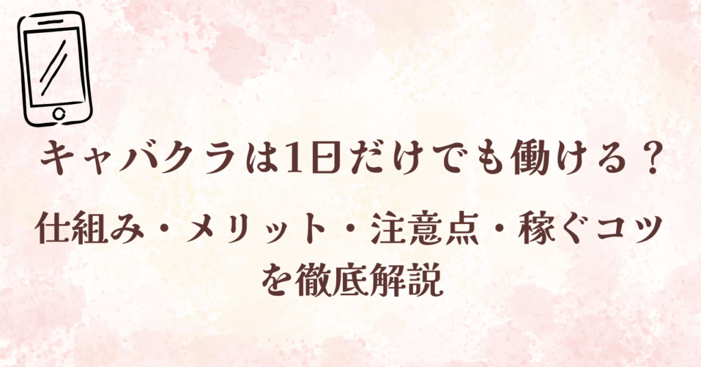 キャバクラは1日だけでも働ける?仕組み・メリット・注意点・稼ぐコツを徹底解説