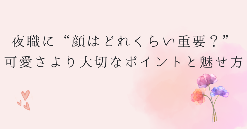 夜職に興味を持つ女性の多くが最初に直面する不安が、「夜職って顔が可愛くないと無理なの?」という疑問です。SNSでは美人キャストが目立つため、「自分には向いていないかも…」と不安になる人も少なくありません。 しかし実際は、夜職で活躍する女性の多... -