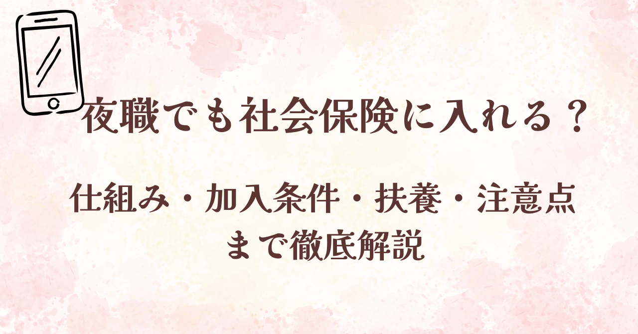 夜職でも社会保険に入れる?仕組み・加入条件・扶養・注意点まで徹底解説